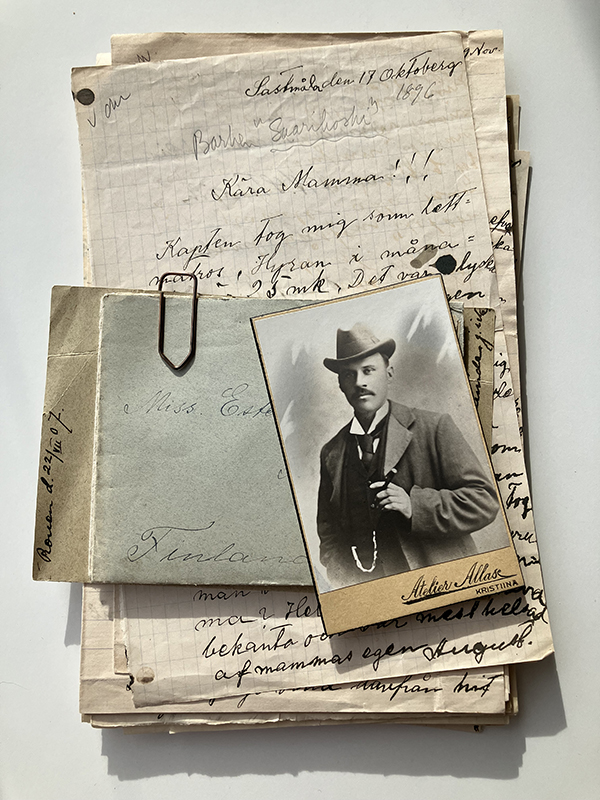 På Kristinestads sjöfartsmuseum fick jag läsa jungman August brev hem daterade 1896-1905 samt bläddra i barkskeppet Almas Journal från 1893-1894. Detta gav en extra dimension till de rutter jag hittat tidigare – Att få läsa om livet ombord. Övriga rutter har jag hittat i Ålands sjöfartsmuseums arkiv samt i följande litteratur: Den Åländska segelsjöfartens historia (Georg Kåhre), Stad under segel, Kristinestads sjöart efter 1809 (Christer Norrvik) och Skeppsbyggarland (Kurt Gullberg).