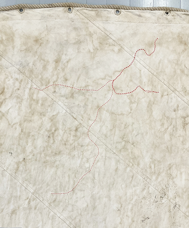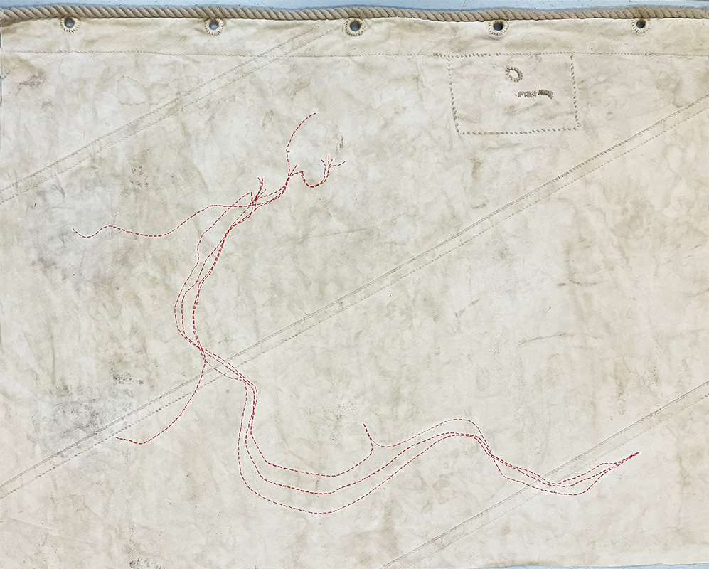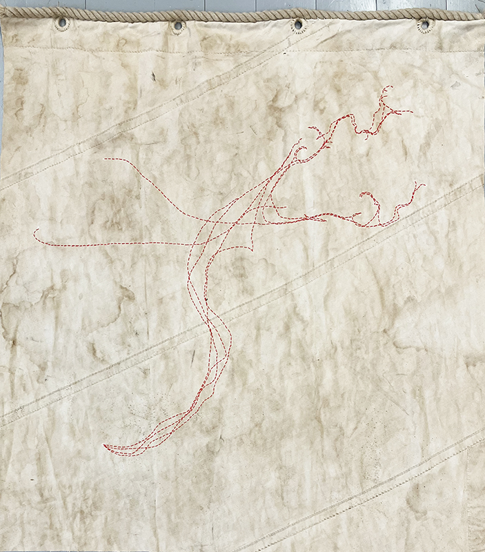 Min hemstad Mariehamn och Kristinestad har båda en stark historia kopplat till segelbåtar och sjöfart. Jag gillar att arbeta med återanvändning av fyndmaterial och återanvändning av föremål och för detta projekt förser det lokala sjöfartsmuseet i Mariehamn mig med tyg från gamla segel från Pommern som har bytts ut. Under residensperioden kommer jag att försöka knyta ihop Kristinestads historia som nav för bomullsimport med min hemstad Mariehamn med hjälp av broderi på segelduk och återskapa historiska transportvägar för olika fartyg. Jag har besökt Sjöfartsmuseets arkiv för att samla information i Mariehamn innan avfärd och ser fram emot att besöka det lokala sjöfartsmuseet Kristinestad.
