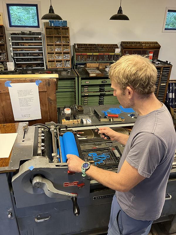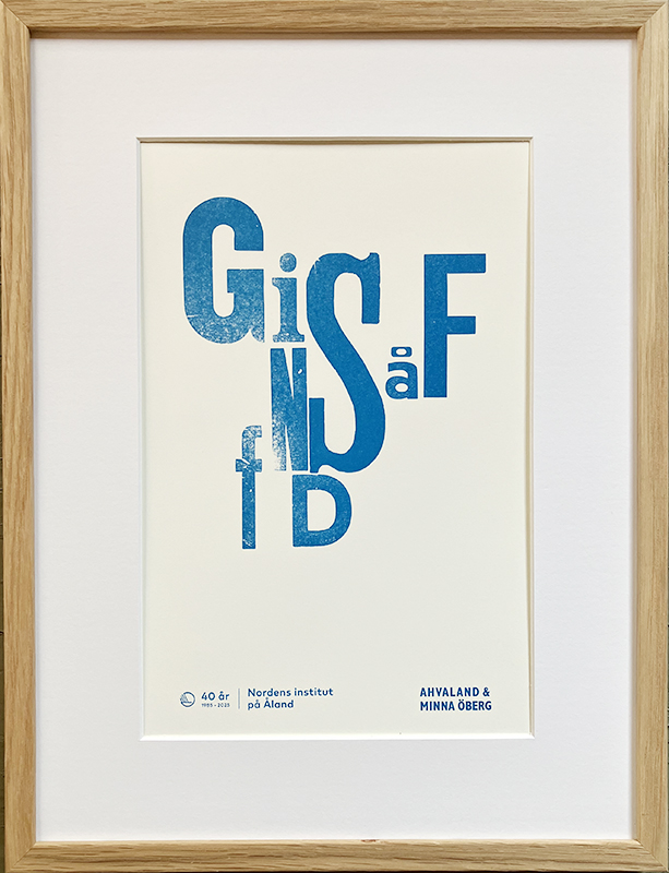I samarbete med Ahvaland, Edvard Johansson, gjorde vi ett jubileumstryck till de inbjudna gästerna från de olika nordiska länderna – En typografisk karta där de olika delarna av Norden representeras av en bokstav.