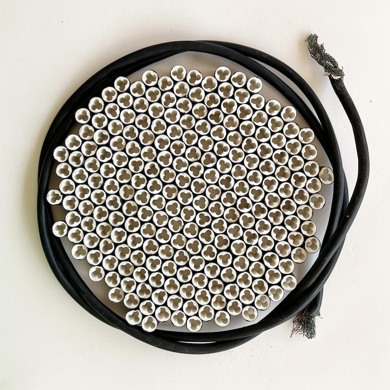 Born and raised on an island – when arriving at Villa Karo the first place to visit was the ocean. During her stay, she continued the daily meetings with the sea which turned out to be her material provider and source of inspiration. Collect, deconstruct, transform, find the patterns and something beautiful in ocean waste. The original idea took different routes. Who knew a discarded book about bacterial diseases could turn out to be a useful guide in pattern making for an artist adrift?