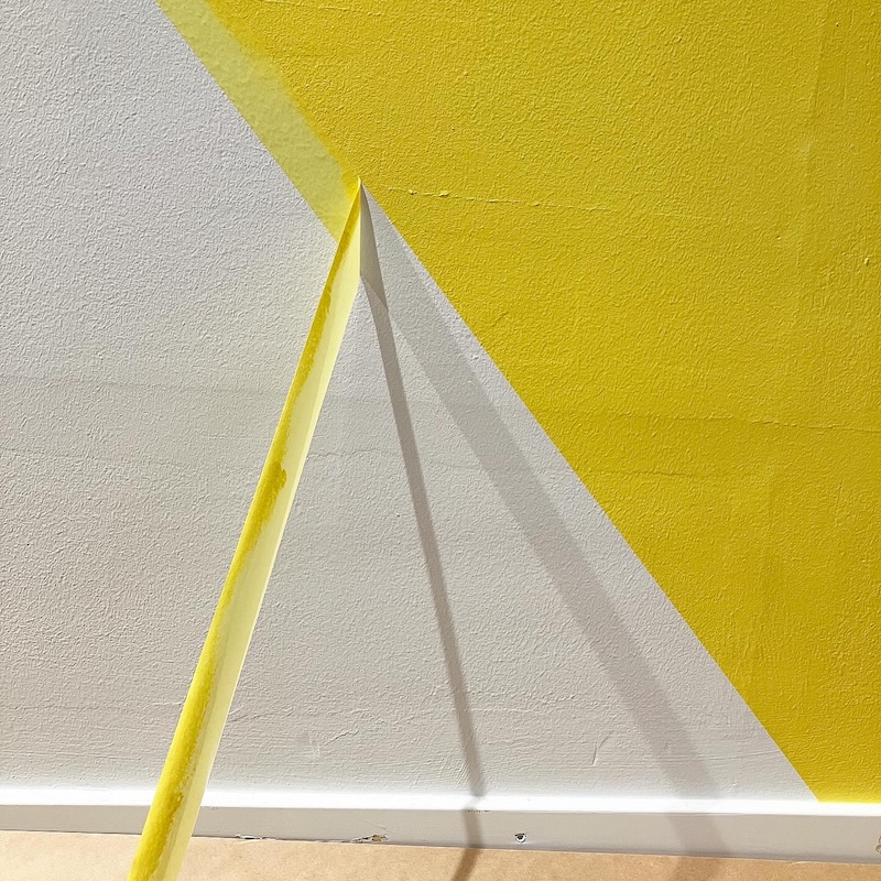 Väggmålning av en knut på ungdomsgården Knuten. Plockade upp den gula färgen från övriga delar av bibliotekshuset som finns på dörrar och ledstång m.m. En pigg kontrast 🙂 Kul start på det nya året!